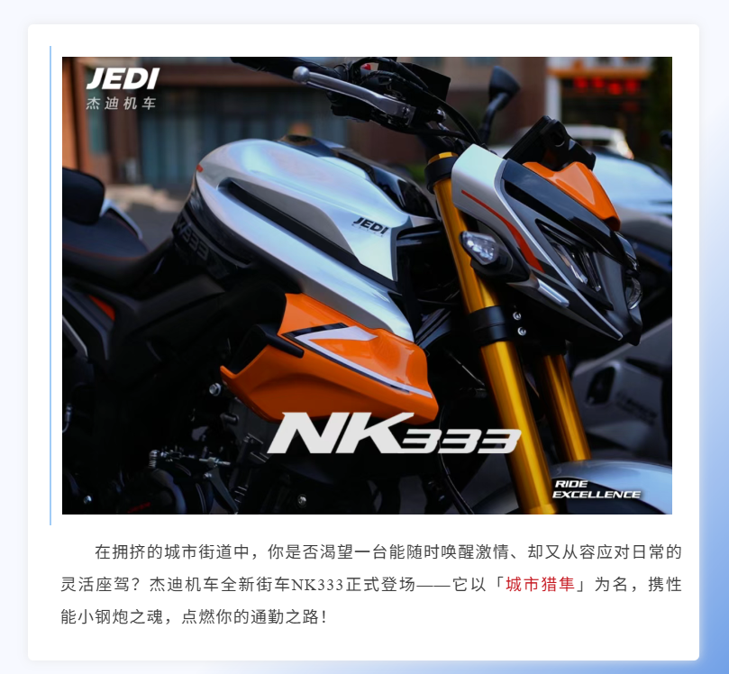 城市猎隼来袭!杰迪机车NK333重塑都市骑行新标杆