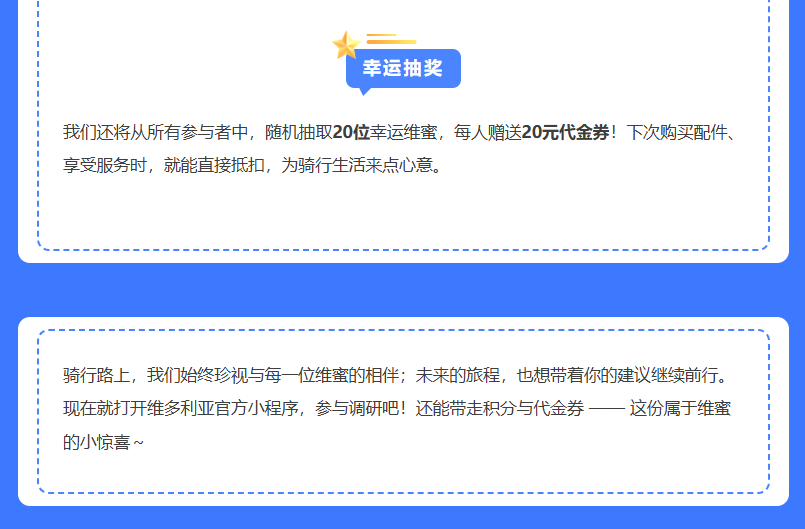 为了更懂你的需求,让未来的产品更贴合你的骑行习惯,让服务更暖你的心,我们精心准备了这次 维多利亚用户专属调研。这不仅是一次问卷填写,更是你与品牌对话的机会 —— 你的每一个答案,都将成为我们优化产品、升级服务的重要方向。