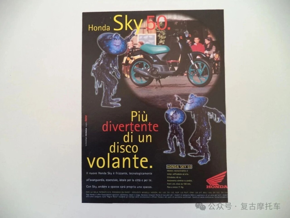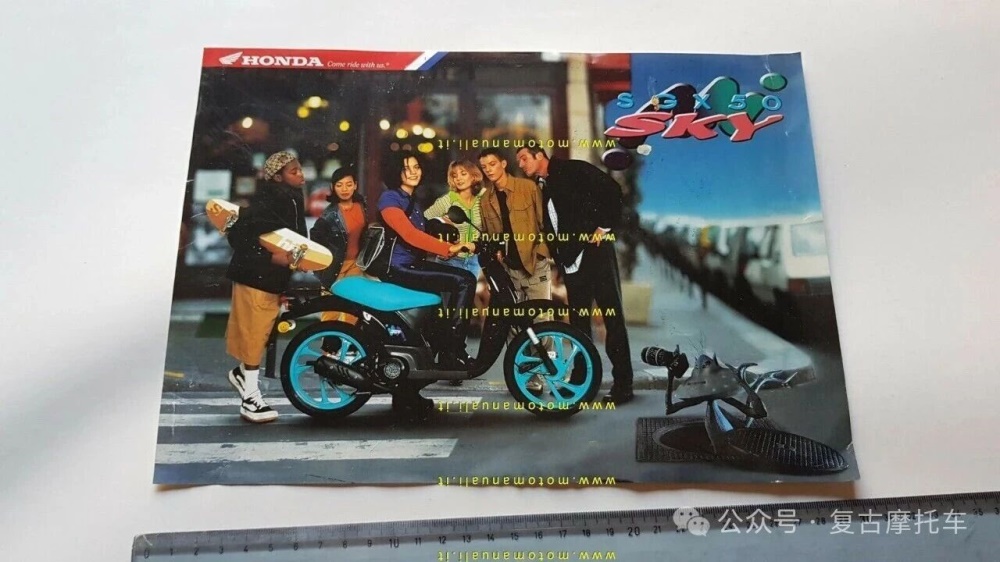 说到Via的身世,就不能不提到它的孪生前辈:欧规版本的本田Sky (SGX50);这款在1997年左右风靡欧洲的“大轮踏板车”,本质上是为了与本土品牌Piaggio或Aprilia竞争而生的产品。