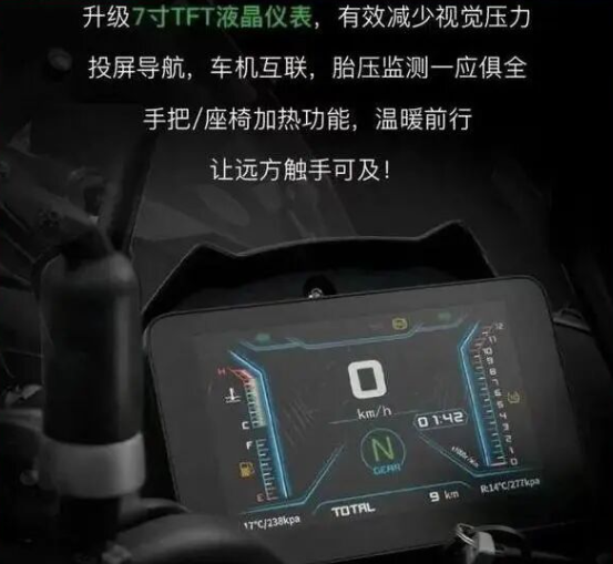 仪表TRK602X 从 TRK552X 的 7 寸反向升级成了 5 寸,又回去了。不过都支持手机互联、投屏导航等功能。同样都标配可关闭的 ABS 和 TCS。