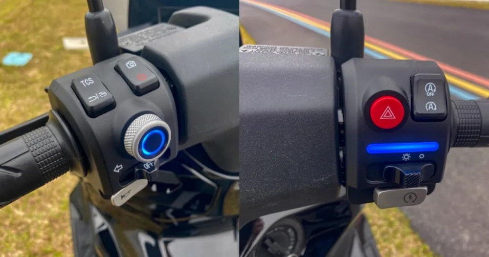 细节上这台车也有一些特别的地方,左侧手把的功能按键设计成为了旋钮,右侧也有一根氛围灯带,这在小排量车型确实罕见。