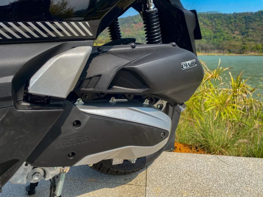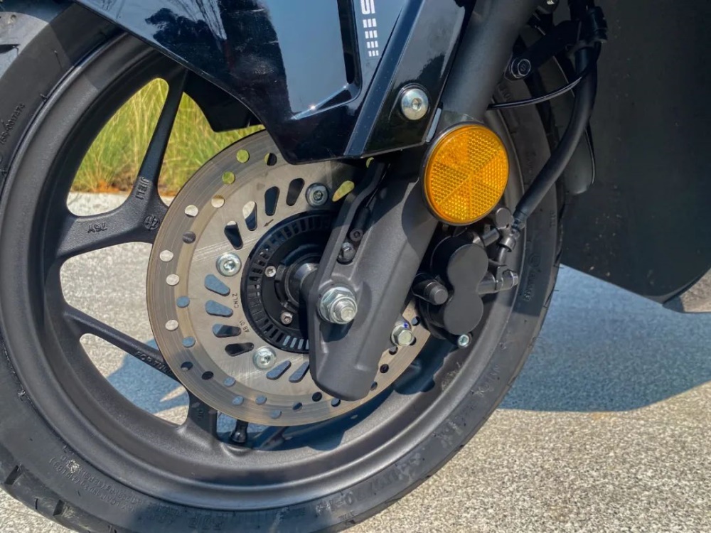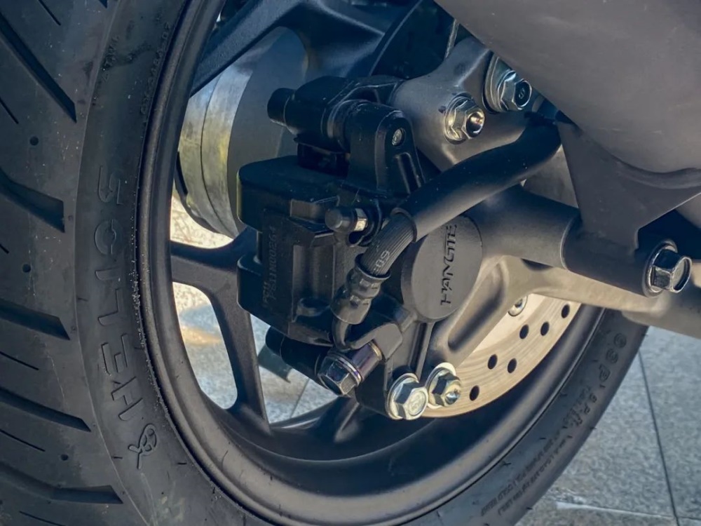 操控方面,轮胎采用赫璐半热熔轮胎,尺寸为前110/70-14寸后130/70-13寸,NWG150看似壮硕的体型实际非常灵活,经过小编实车体验,该车在小角度掉头、规避左右障碍等方面具备不错的驾驶乐趣。
