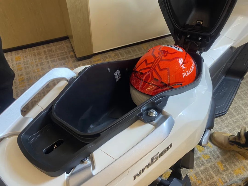 实用性方面,NWG150拥有30L的超大座桶空间,现场放置了一定SHOEI的全盔后依然有富余空间,手套箱内还有type-c充电口,摩旅版更是拥有原装尾箱,进一步加强储物能力。