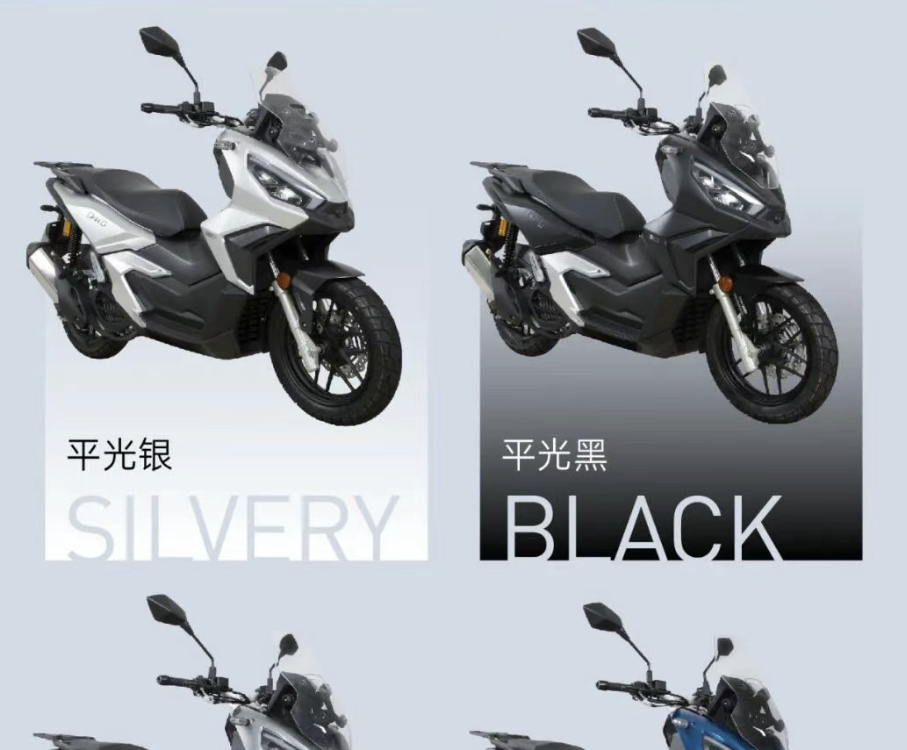 虽然是跨界ADV踏板,看第一页的宣传图:“公路上,驾驶员即将同傾压弯的瞬间”,潜移默化的告诉我们,这车还是在道上骑的,ADV元素更多体现在设计风格上。