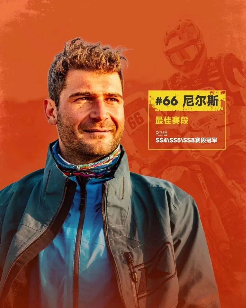 卫冕冠军、KTM车队的澳大利亚车手丹尼尔·桑德斯在本届比赛中经历了过山车般的旅程。他在赛事前半段表现出色,一度领跑总成绩榜,但在后半程遭遇严重摔车事故,导致身体受伤。令人惊叹的是,他带着锁骨和胸骨骨折的伤势,以顽强的毅力坚持完成了最后三个赛段的比赛,并最终位列总成绩第五名,赢得了所有人的尊重。